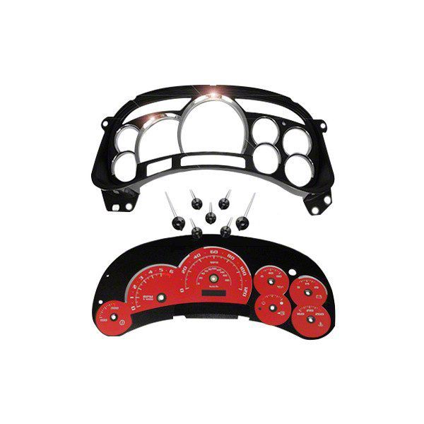 Stylish Replacement. Made for the Chevrolet Silverado 1500, this US Speedo Escalade Edition Gauge Cluster Kit comes in a matte black and flat red finish with white lettering and needles. Crafted for a perfect fit, this gauge cluster kit is made in the USA for a stylish direct replacement of your stock gauge cluster.