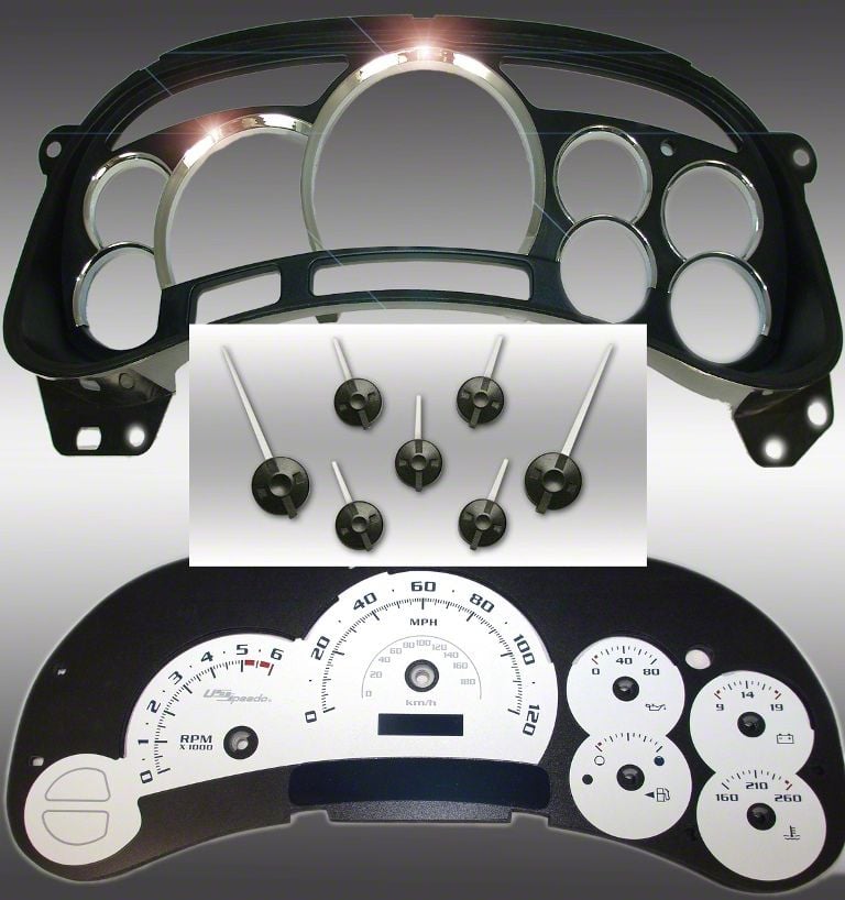 Application. The US Speedo Escalade Edition LED Ready Gauge Face; MPH; White is designed to fit 2003-2005 Chevrolet Silverado 1500 models.