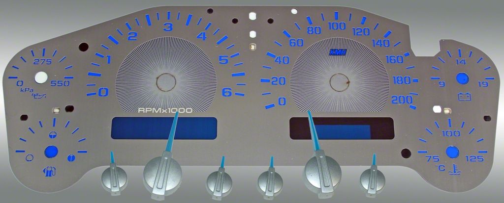Modern Truck Dashboard. Designed for a seamless integration, it utilizes your truck's existing factory gauge cluster and wiring, making installation straightforward without the need for extensive modifications. The standout feature of this gauge face is its stunning blue LED illumination, which not only enhances visibility but also adds a modern, sophisticated touch to your vehicle's dashboard.