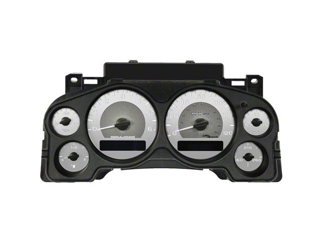Overlay Process. Designed as an overlay gauge face, this product seamlessly fits over your existing gauges, providing a quick and easy installation process. Moreover, it is designed with a 140 MPH speedometer range and includes warning lights and icons that are identical to the OEM unit, maintaining the factory-like appearance of your Silverado 1500's instrument cluster.