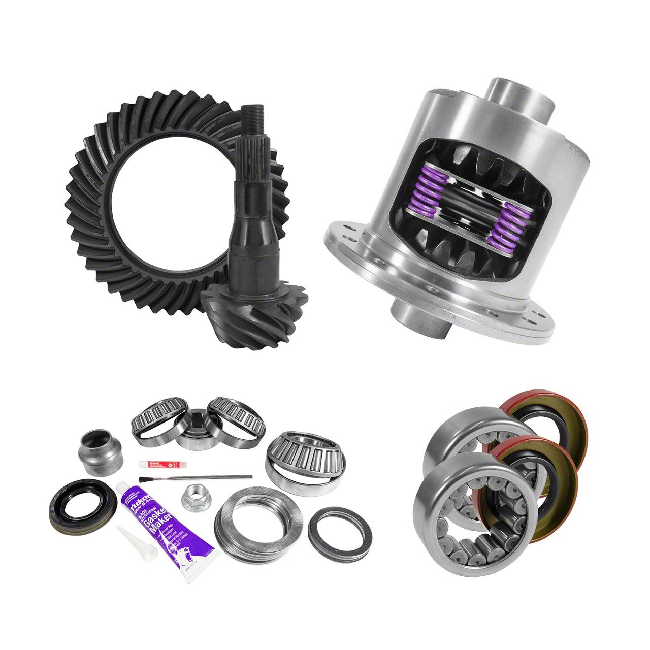 Optimized Performance. The USA Standard Gear Posi Axle Ring and Pinion Gear Kit is a top-tier upgrade for your F-150, designed to enhance your vehicle's traction and drivability. With a gear ratio of 3.55 and a ring diameter of 9.75 inches, this rear model kit is finished in matte black and polished chrome, striking the perfect balance between aesthetics and functionality. It includes a master bearing installation kit, featuring high-quality Koyo bearings and a Yukon Dura Grip clutch style limited slip for improved traction and a rebuildable Dura Grip for long-term reliability.