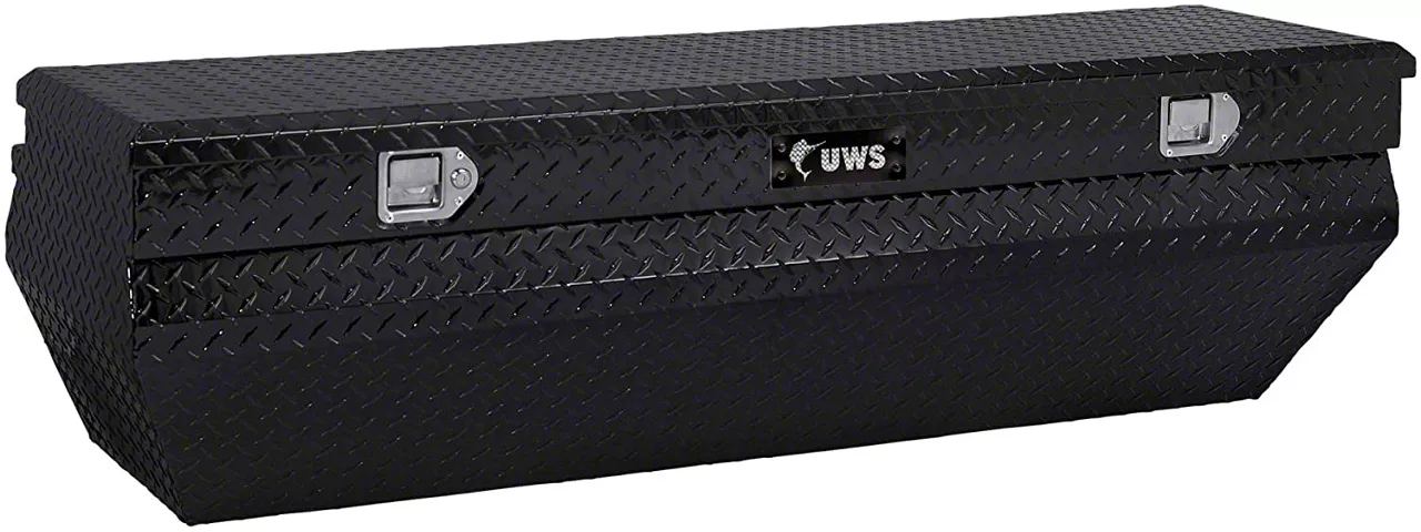 Rugged Off-Road Tool Box. This Gloss Black Bright UWS 55-Inch Aluminum Wedge Angled Utility Chest Tool Box is ideal for a range of off-road adventures with the durability and large capacity that it provides. This tool box comes with a MicroSeal gasket that keeps its contents safe against moisture and dust. And with its wedged design, this tool box guarantees optimum storage by clearing the wheel wells or other accessories while also giving your truck a more rugged appeal than ever.