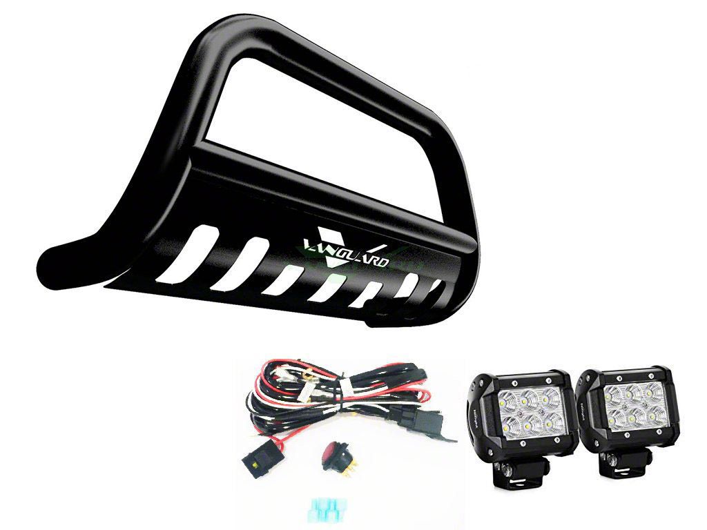 Outstanding Front Fascia Protection. If you’re looking to improve your front-end protection but do not want the added weight of a front bumper upgrade, then this Vanguard Off-Road 3-Inch Bull Bar with 2.50-Inch LED Cube Lights; Black Finish is just what you need. This bull bar assembly’s tubular steel construction and plate steel skid plate is significantly lighter than a typical steel front bumper. This lighter weight helps keep your truck performing more efficiently without greatly compromising impact protection. Moreover, this assembly features an all-black color scheme to add a fierce style accent to your front end.