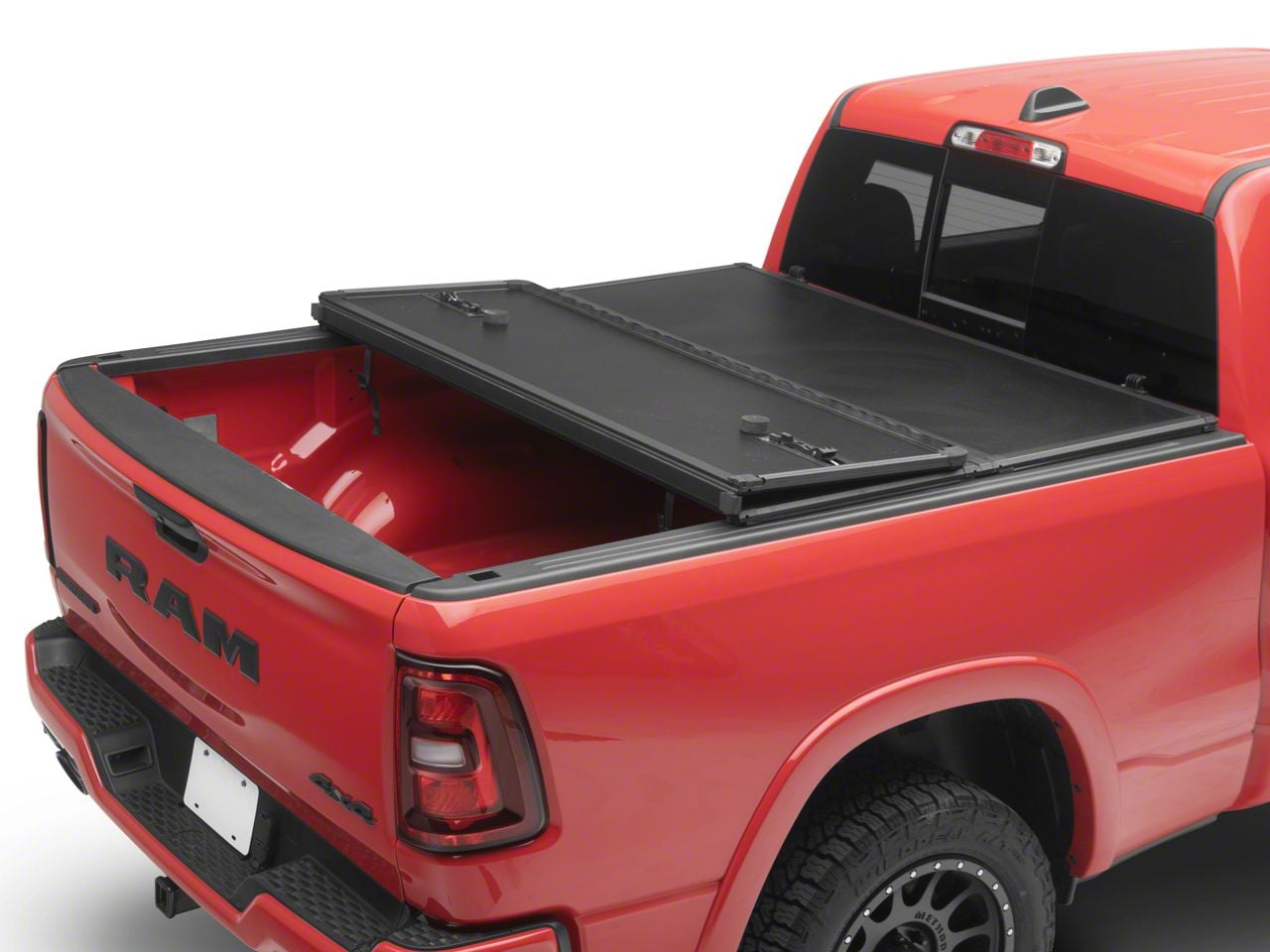 Effective Bed Protection for All Your Hauling Needs. Whether for work or leisure, your RAM 1500’s truck bed can do with protection against the weather. For this purpose, you need Vanguard Off-Road Hard Tri-Fold Tonneau Cover in Black. This tonneau cover’s hard tri-fold style and effective weather sealing will provide your truck bed with outstanding all-weather protection, making all your hauling jobs much more efficient. Additionally, this assembly features an all-black color profile that's as stylish as it is functional.
