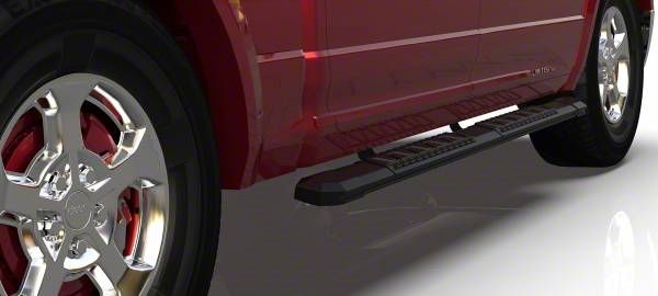 Elevating Vehicle Aesthetics. The addition of the sleek, black Rival Running Boards significantly enhances the overall appearance of your RAM 1500 Crew Cab, lending it a more polished, customized, and visually appealing aesthetic. These running boards integrate seamlessly with the vehicle's design, providing a clean and sophisticated line along the sides.