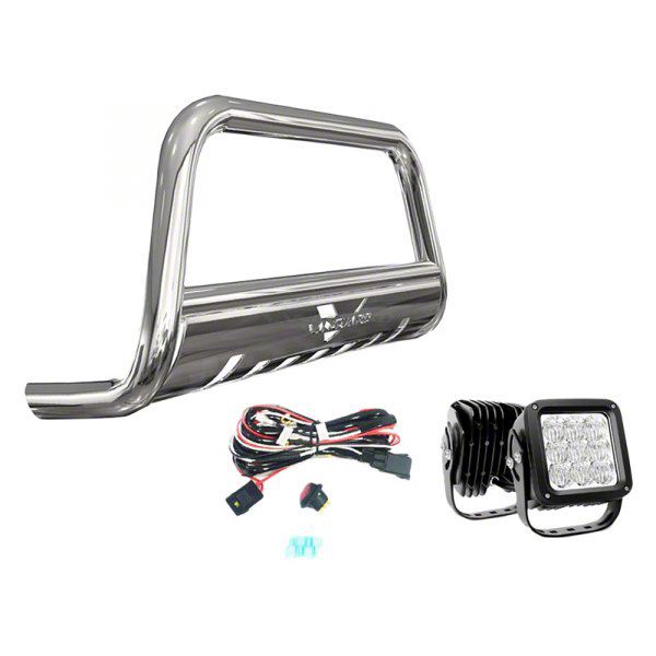4.50-Inch LED Cube Lights. This bull bar comes with (2) 4.50-inch LED cube lights designed to install on the pre-drilled light holes. These lights help increase visibility on the path ahead, making your trips safer.