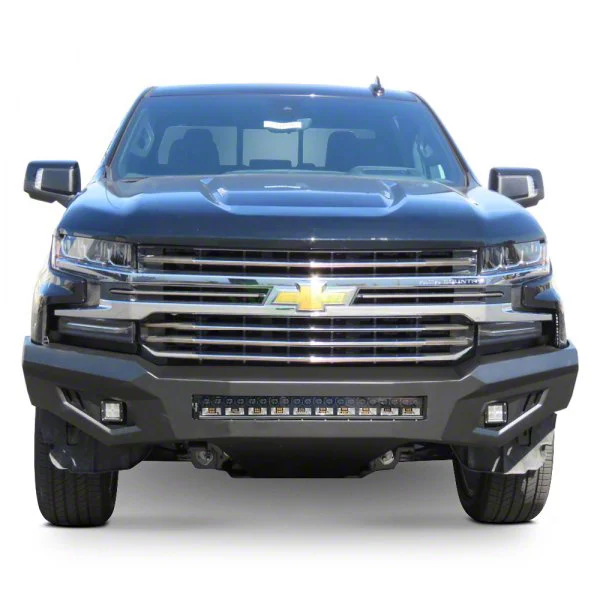 Rugged Bumper Upgrade. Its design not only provides a rugged and aggressive appearance but also enhances the overall aesthetics of your Silverado, making it stand out on the road. The bumper is finished with a UV-protected powder coat, ensuring it remains resilient against wear, tear, and fading, maintaining its sleek black look for years to come.