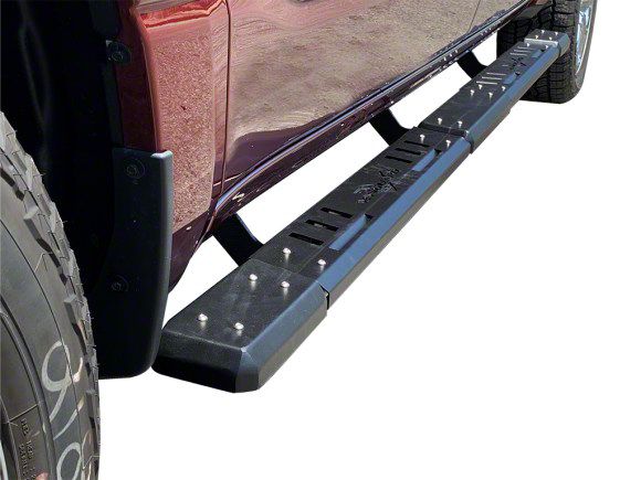 Description. Trimming of the undercarriage cover is required for most vehicles. Made with Q235 Structural Steel. Electrophoretic black primer combined with black powder topcoatIncludes all assembly and mounting hardware. Premium rugged look paired with a structurally robust build supports 300 pounds per bar. 5-inch wide stepping area to provide easy and secure footing. Open-channel design allows wet elements to drain from the surface to maintain your traction even during inclement weather. Mirror-polished stainless steel background underneath a laser-cut Vanguard logo cutout for a premium feel. Professional installation is recommended