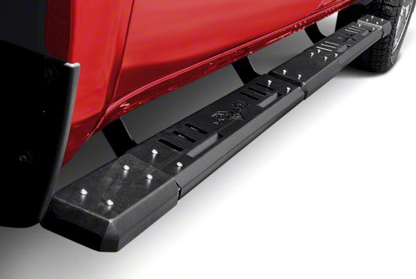 Black Powder-Coated Steel. Crafted from durable Q235 structural steel and T304 stainless steel, these bars support up to 300 pounds per side, ensuring safe and secure access to your vehicle. The aggressive styling is complemented by a sleek black powder-coated finish and an electrophoretic black primer for lasting durability.