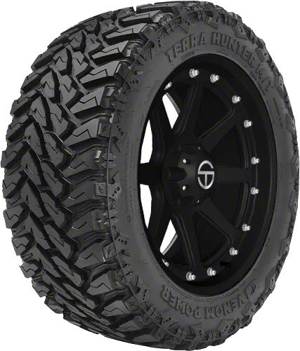 Description. A mud terrain tire, the Terra Hunter M/T from Venom Power is built for use on Jeeps, light trucks, and SUVs that frequently drive off road. A tough rubber compound boost strength and durability to help protect the tire from damage and promote a longer tread life, and the Terra Hunter M/T's self cleaning grooves force mud, dirt, rocks, and other unwanted materials out of the tire for consistent traction and to protect the casing from damage.