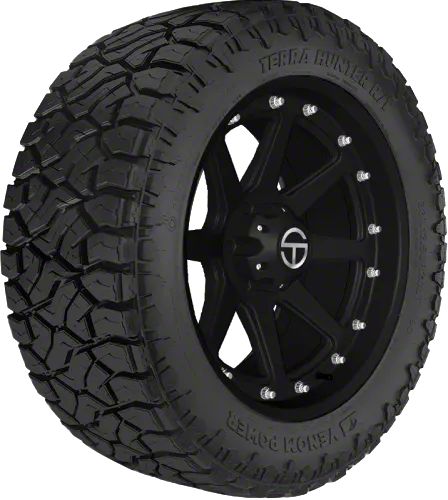 Description. The Venom Power Terra Hunter R/T+ is a rough terrain tire that offers drivers of Jeeps, light trucks, and SUVs balanced traction and performance on and off road. An aggressive, self cleaning tread pattern allows for consistent traction in mud, dirt, sand, and other tough off road conditions, and the Terra Hunter R/T+'s rubber compound improves strength and durability for a longer tread life while also enhancing performance on dry, wet, and wintry roads.