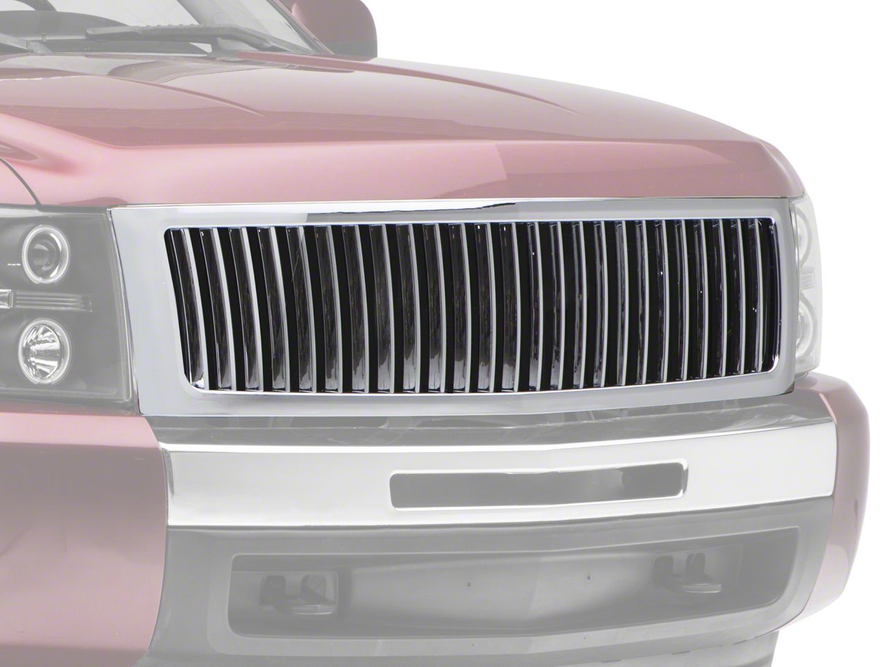 Enhances Overall Style. Replace your existing grille with this Vertical Upper Replacement Grille. This grille sets your Chevy apart with its stunning vertical design and sleek chrome finish. Aside from enhancing your truck’s overall style, this grille blocks most road debris from penetrating your truck’s radiator and engine.