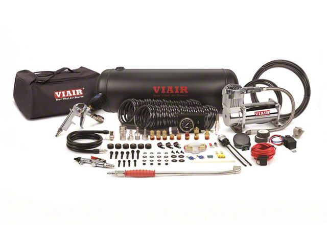 Description. The Base Camp Heavy Duty OBA by VIAIR® operates at 150PSI from a 2 gallon tank and it’s powered by a 400C Chrome compressor, making for fast inflation rates for most Class C RV Tires from 70 to 80 PSI in approximately one minute. This pre-packaged air solution comes with all necessary components needed to install a working system, useful for multiple pneumatic applications such as air tools, air lockers, blowing and cleaning tasks, inflating recreational equipment, air horns and many others.