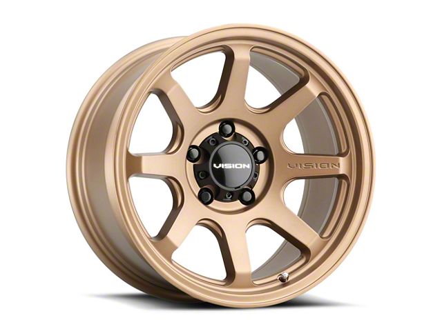 This 17x8.5 Vision Off-Road Flow Bronze 8-Lug Wheel; 17x8.5; 18mm Offset is completed in a high-quality bronze finish that will be the envy of everyone. For added protection and looks, there is a clear coat designed to handle whatever the road, or beyond, throws at it.