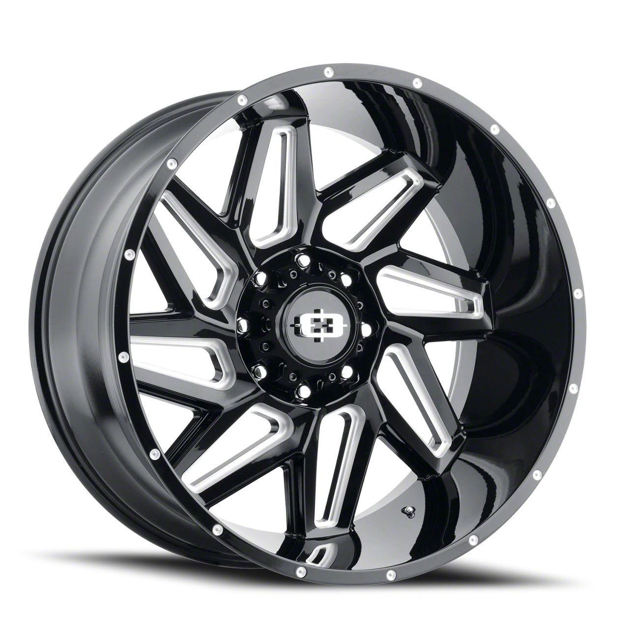 Vision Off-Road Spyder Gloss Black Milled Spoke 8-Lug Wheel; 18x9; 12mm Offset This wheel delivers distinctive styling with unique design elements that set your vehicle apart from the crowd. Its eye-catching appearance combines functional design with bold aesthetics. The carefully engineered profile enhances the overall stance and presence of trucks and SUVs.
