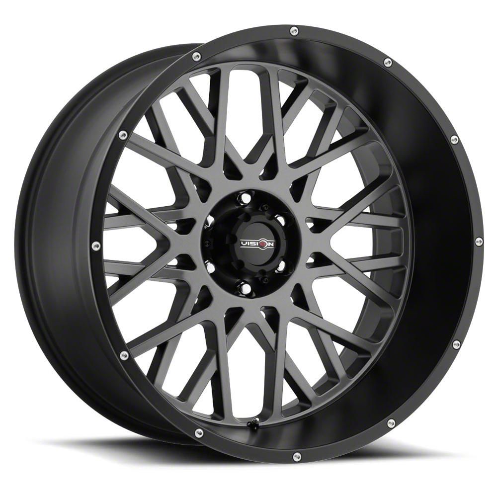 Vision Off-Road Rocker Anthracite with Satin Black Lip 8-Lug Wheel; 20x12; -51mm Offset - Experience the sleek elegance of the Vision Off-Road wheel. Its matte black finish adds a touch of sophistication to your vehicle, enhancing its overall appearance without compromising on durability. Perfect for a variety of vehicle styles, this wheel is a testament to the brand's commitment to quality and aesthetic excellence.