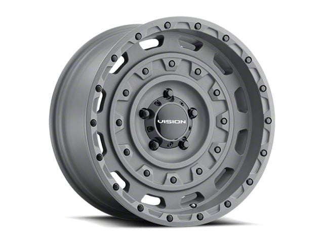 Vision Off-Road Tactical Thrashed Gunmetal 8-Lug Wheel; 17x10; -25mm OffsetThe Vision Off-Road Tactical Thrashed Gunmetal 8-Lug Wheel brings a distinctive design and a robust visual profile, ideal for drivers looking to make a statement. Its finish and multi-lug pattern make it a prime choice for those who value aesthetics as much as strength. With dimensions tailored for presence and style, it's a great match for trucks or off-road builds. A perfect blend of style and ruggedness.