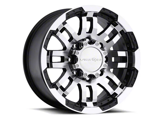 The 18x8.5 Vision Off-Road Warrior Gloss Black Machined 8-Lug Wheel is completed in a high-quality gloss black finish, with machined accents. Thanks to a durable clear coat, the finish looks amazing and also protects against the rigors of driving.