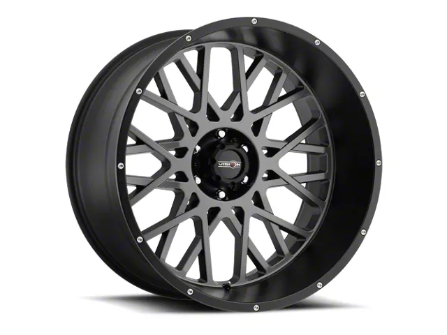 Vision Off-Road Rocker Anthracite with Satin Black Lip 8-Lug Wheel; 24x12; -51mm Offset This wheel features an exceptional design that enhances the aesthetic appeal of your vehicle. Its robust build and refined finish make it a premium addition to any compatible truck.