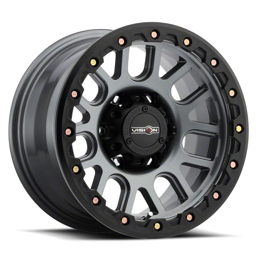 Vision Off-Road Nemesis Gunmetal 6-Lug Wheel; 18x9; 0mm Offset. The Vision Off-Road Nemesis Gunmetal 6-Lug Wheel offers a striking balance of style and refinement. Its unique design accentuates the vehicle's aesthetic, while the premium construction underscores its robust nature. This wheel is a perfect choice for those seeking both elegance and a strong visual statement.