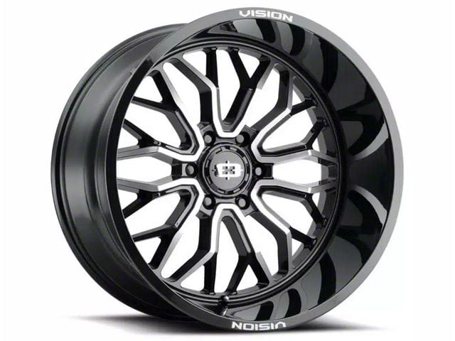 Vision Off-Road Riot Gloss Black Machined 6-Lug Wheel; 22x10; -19mm Offset. The Vision Off-Road Riot Gloss Black Machined 6-Lug Wheel offers a striking balance of style and refinement. Its unique design accentuates the vehicle's aesthetic, while the premium construction underscores its robust nature. This wheel is a perfect choice for those seeking both elegance and a strong visual statement.