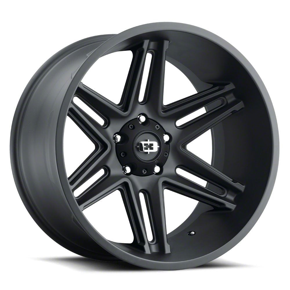 This 22x12 Vision Off-Road Razor Satin Black 5-Lug Wheel; 22x12; -51mm Offset is completed in a high-quality satin black finish that will be the envy of everyone. For added protection and looks, there is a clear coat designed to handle whatever the road, or beyond, throws at it.