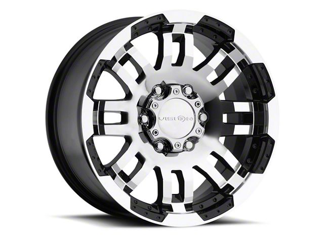 This 17x8.5 Vision Off-Road Warrior Gloss Black Machined 6-Lug Wheel is completed in a high-quality gloss black finish with machined accents that will be the envy of everyone. There's a durable clear coat that protects against driving hazards.