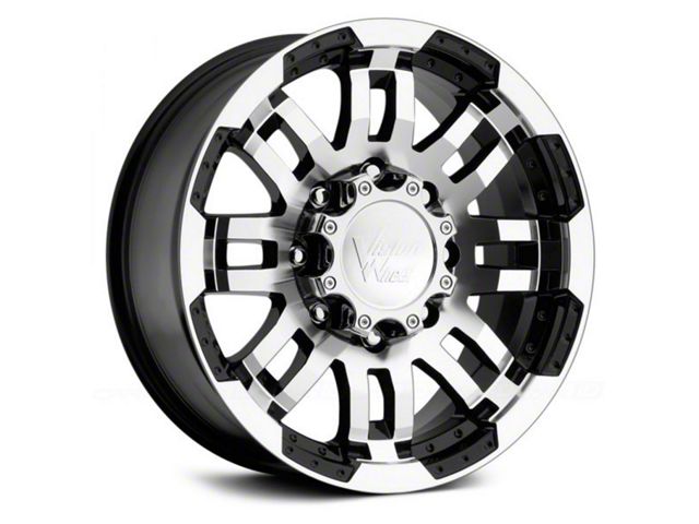 Gloss Black Finish with Machined Accents. This Vision Off-Road Wheel is completed in a high quality, black finish with machined accents for an impressive appearance that will make onlookers green with envy. For added protection and good looks, this Wheel features a durable, gloss clear coat that is tough enough to stand up against the hazards of everyday driving - including road chips and pitting.