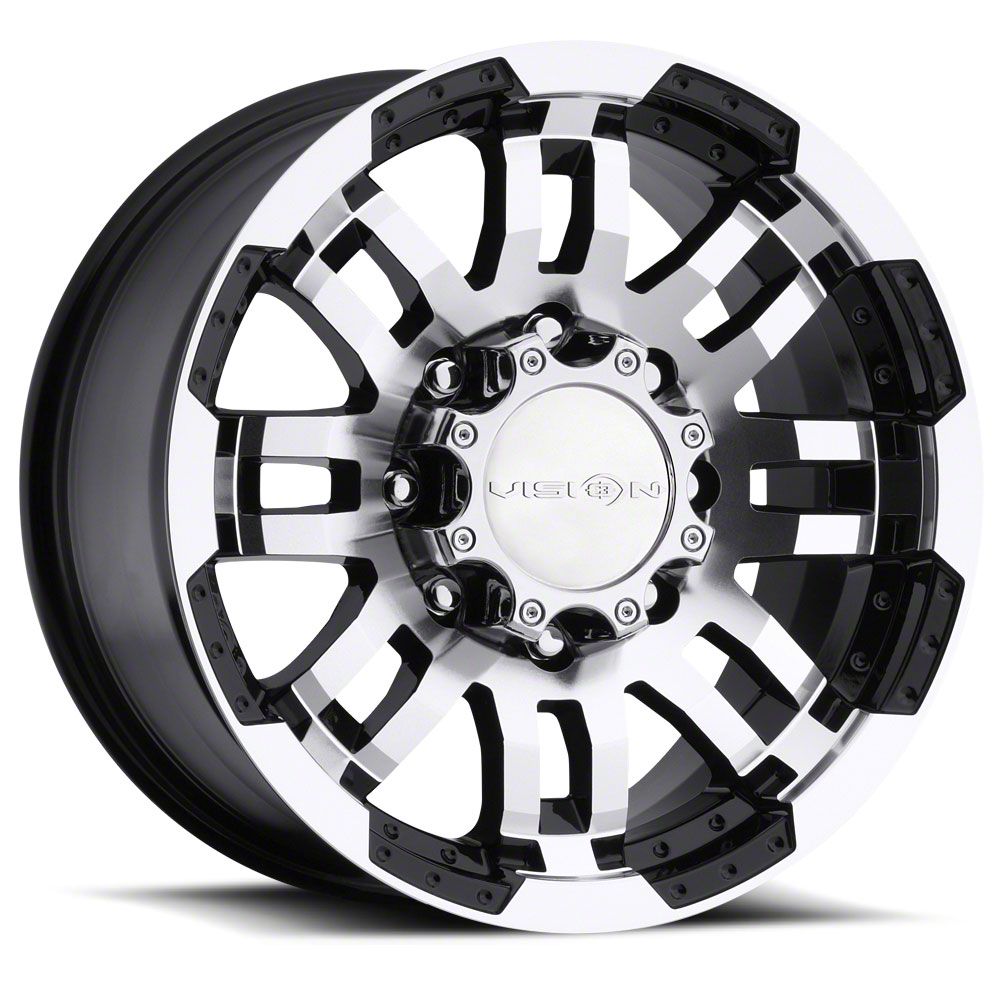 The 18x8.5 Vision Off-Road Warrior Gloss Black Machined 8-Lug Wheel is completed in a high-quality gloss black finish, with machined accents. Thanks to a durable clear coat, the finish looks amazing and also protects against the rigors of driving.