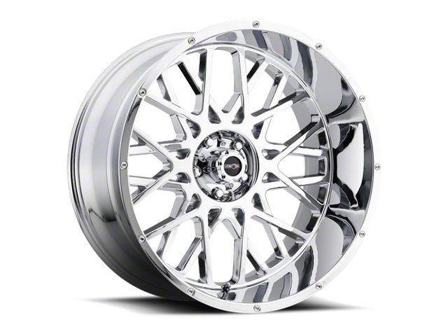 This 22x10 Vision Off-Road Rocker Chrome 6-Lug Wheel is completed in a high-quality polished chrome finish that was achieved in a 3-step process involving copper, nickel and chrome. There's a durable clear coat that protects against driving hazards.