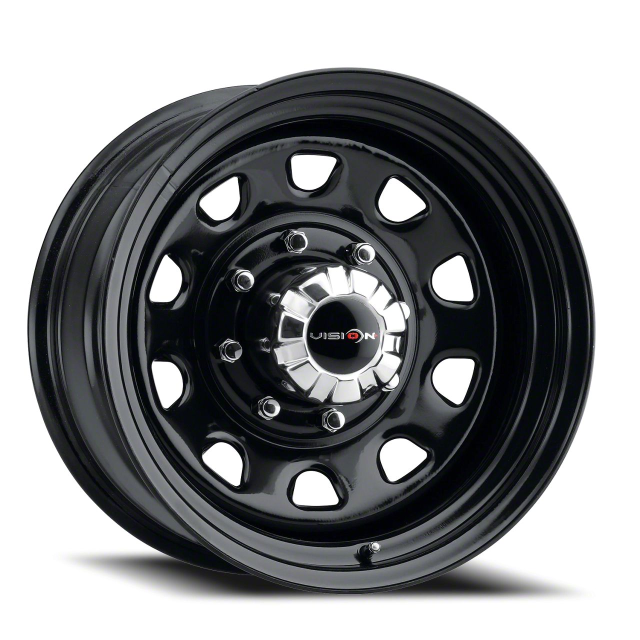 Vision Wheel D Window Steel Gloss Black 8-Lug Wheel; 17x9; -12mm Offset This Vision Wheel D Window Steel Gloss Black 8-Lug Wheel; 17x9; -12mm Offset brings a sleek and modern touch to your vehicle with its striking design. Its refined finish and bold styling make it an excellent choice for those looking to enhance their car’s visual appeal. Whether you're aiming for a sporty look or a more aggressive stance, this wheel stands out as a premium addition. Perfect for drivers who appreciate a stylish upgrade.