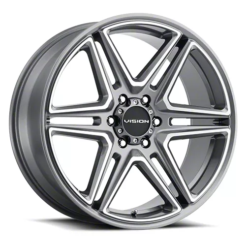 Vision Wheel Wedge Gunmetal Machined 6-Lug Wheel; 24x9.5; 30mm Offset This wheel features an exceptional design that enhances the aesthetic appeal of your vehicle. Its robust build and refined finish make it a premium addition to any compatible truck.