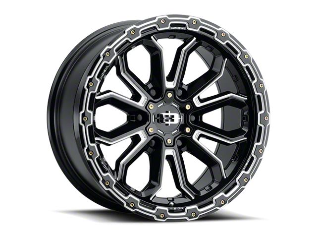 This 20x9 Vision Wheel Korupt Gloss Black Milled 8-Lug Wheel is completed in a high-quality gloss black finish with steel milled accents that will create a striking appearance. There's a durable clear coat that protects against driving hazards.