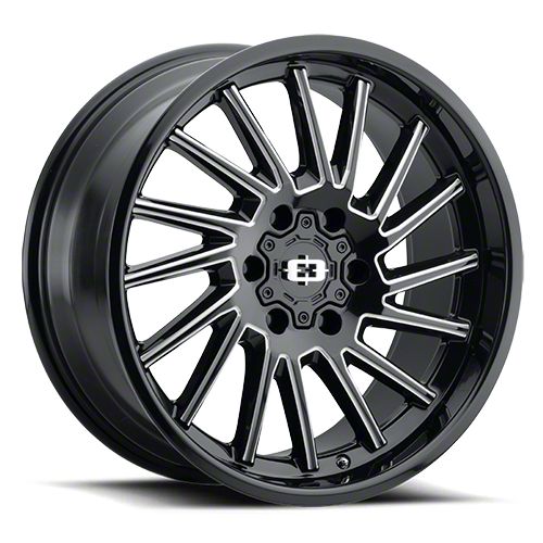 This 20x12 Vision Wheel Rapier Gloss Black Milled Spoke 5-Lug Wheel; 20x12; -51mm Offset is completed in a high-quality gloss black finish with milled spokes that will be the envy of everyone. For added protection and looks, there is a clear coat that can withstand the rigors of daily driving.