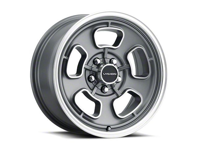 This 17x8 Vision Wheel Shift Satin Grey with Machined Face/Lip 5-Lug Wheel; 17x8; 0mm Offset is completed in a high-quality satin gray finish with steel machined accents that will be the envy of everyone. For added protection and looks, there is a clear coat that can withstand the rigors of daily driving.