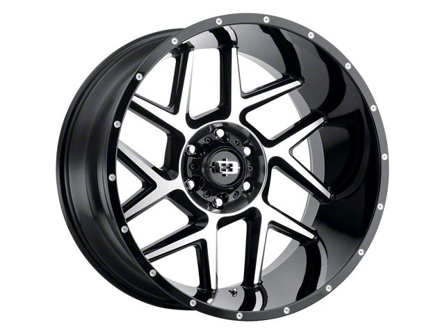 This 20x9 Vision Off-Road Sliver Gloss Black Machined 8-Lug Wheel is completed in a high-quality gloss black finish with machined accents to create an impressive appearance. There's a durable clear coat that protects against driving hazards.