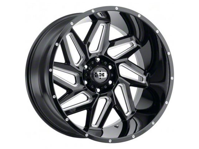 Vision Off-Road Spyder Gloss Black Milled 8-Lug Wheel; 20x9; 12mm Offset - This wheel's elegant design will certainly enhance your vehicle's aesthetic, complementing its luxury and performance. The unique styling of this wheel makes it an ideal choice for a standout quality of your ride, reflecting the premium quality associated with the Vision Off-Road brand.