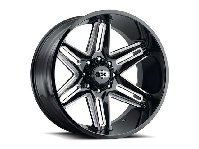 Vision Off-Road Razor Gloss Black Milled 8-Lug Wheel; 22x12; -51mm Offset exudes sophistication with its finish, offering a sleek and modern appeal to any vehicle it adorns. The design is meticulously crafted to enhance the aesthetic of your vehicle, giving it a distinctive and upscale look. Perfect for those seeking to elevate their vehicle's style, this wheel blends seamlessly with both contemporary and classic vehicle designs, making it a versatile choice for a wide range of vehicles. Its robust construction ensures durability, making it a reliable choice for drivers who value both style and quality.