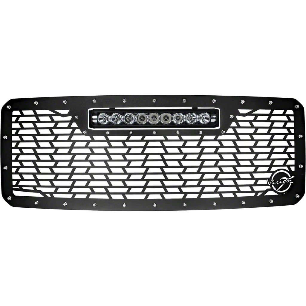 Full Strong Replacement. Illuminate your path and elevate the look of your Ford F-250 Super Duty model with the Vision X Upper Replacement Grille, featuring an integrated XPR-9M LED Light Bar. This grille is a full replacement, crafted from strong stainless steel material to ensure durability and resilience. Furthermore, it boasts a sleek black satin powder-coat finish, offering both protection and style.