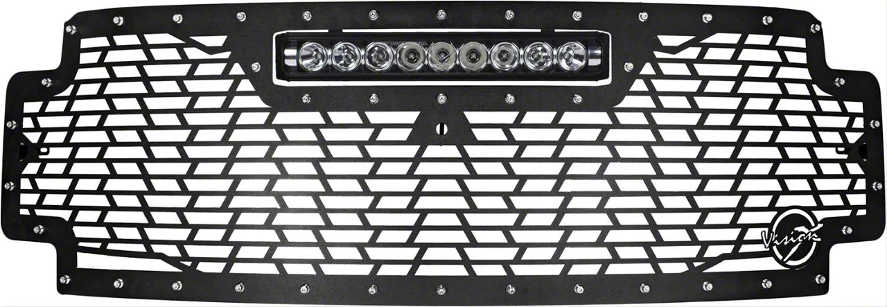 Application. The Vision X Upper Replacement Grille with XPR-9M Light Bar fits 2017-2019 F-350 Super Duty.