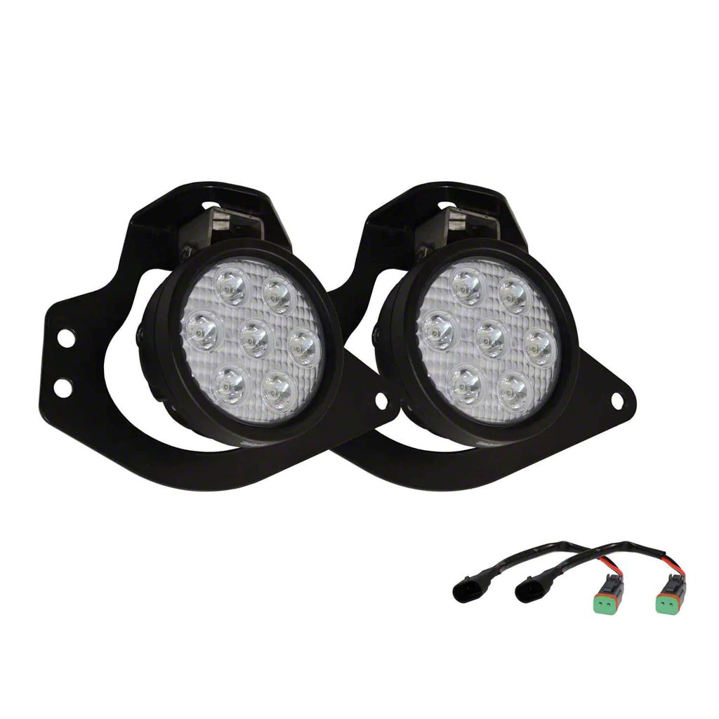 Description. The Dodge Ram Fog Light Kit features 5 watt LED Technology, narrow beam pattern offers you an even tighter beam pattern for great distance, and black aluminum housing. The Kit comes with a Limited Lifetime Warranty. It comes with the hardware, lights and a multi-volt 9-48V DC input. Offers a bolt on direct to factory mounting and gives you triple the light output of factory.