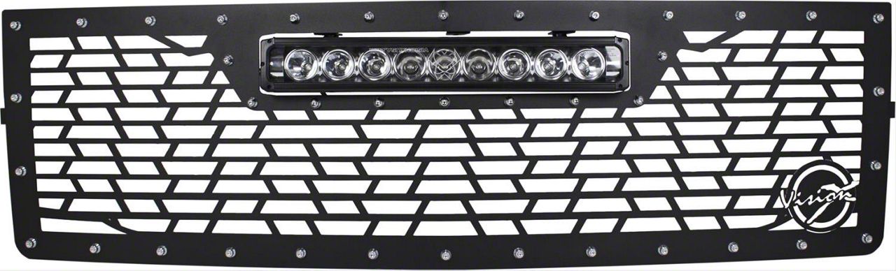 Lighted Grille. The Vision X Upper Replacement Grille is an exquisite upgrade for discerning vehicle owners. This premium accessory, featuring XPR-9M Light Bar, is expertly designed to enhance both aesthetics and functionality. The lightbar also features accurately tilted IRIS reflectors that ensure optimal lighting performance.
