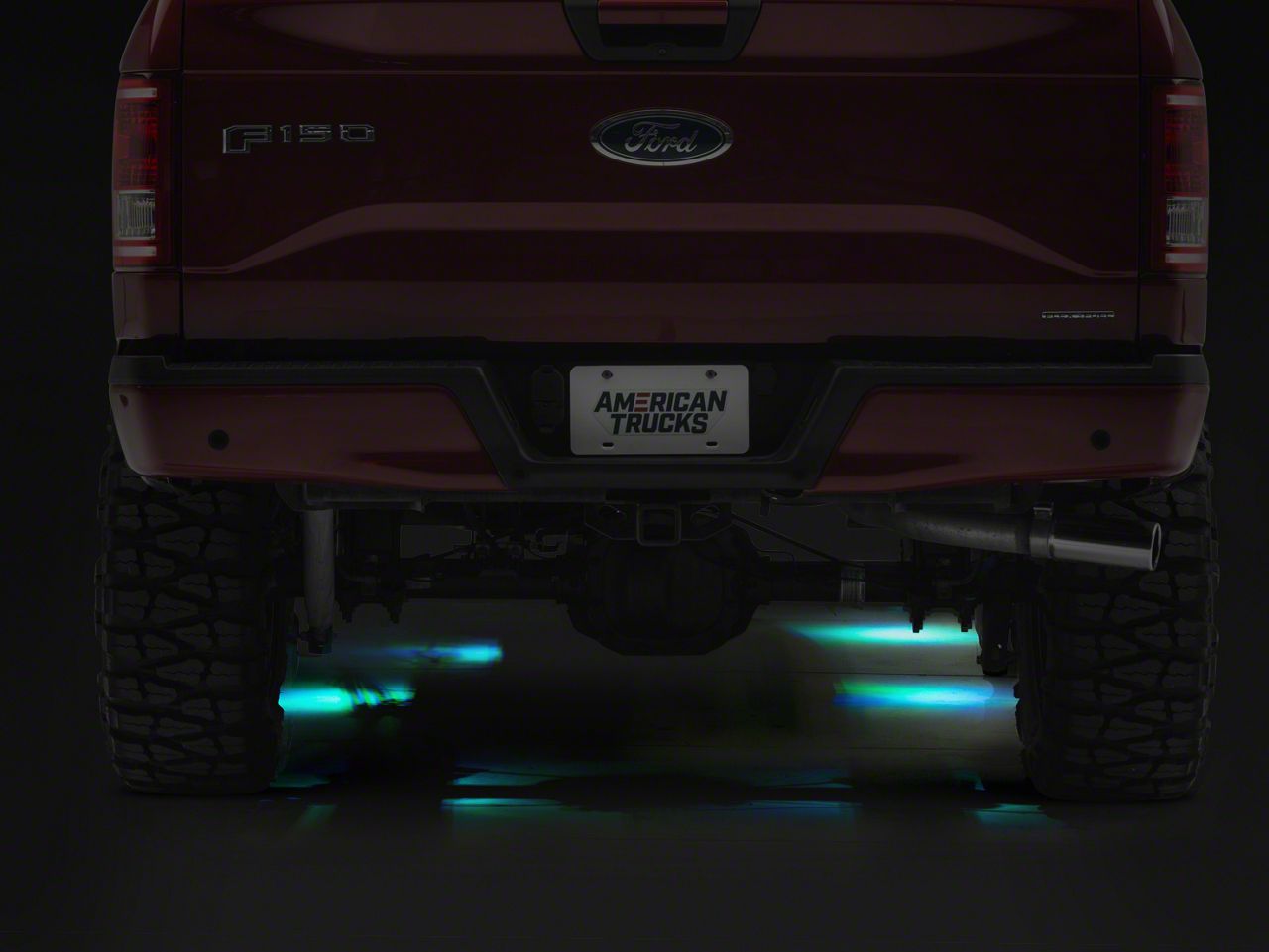 Undercarriage Lighting. Light up the ground beneath you for better visibility with the Vision X Tantrum LED Rock Lights. These lights feature multiple colors including red, green, and blue that can be changed with a touch of a button. The lights install directly under your F-150 for better vision in any situation. Easily make repairs to your truck no matter what time of night, check your tread when rock crawling or just add that custom styling. The Tantrum Rock Lights come in a kit of (8) 1 watt pods and include a multi-speed scanning and strobe mode. You can even turn your lights on and off with the included wireless remote for a precise control.