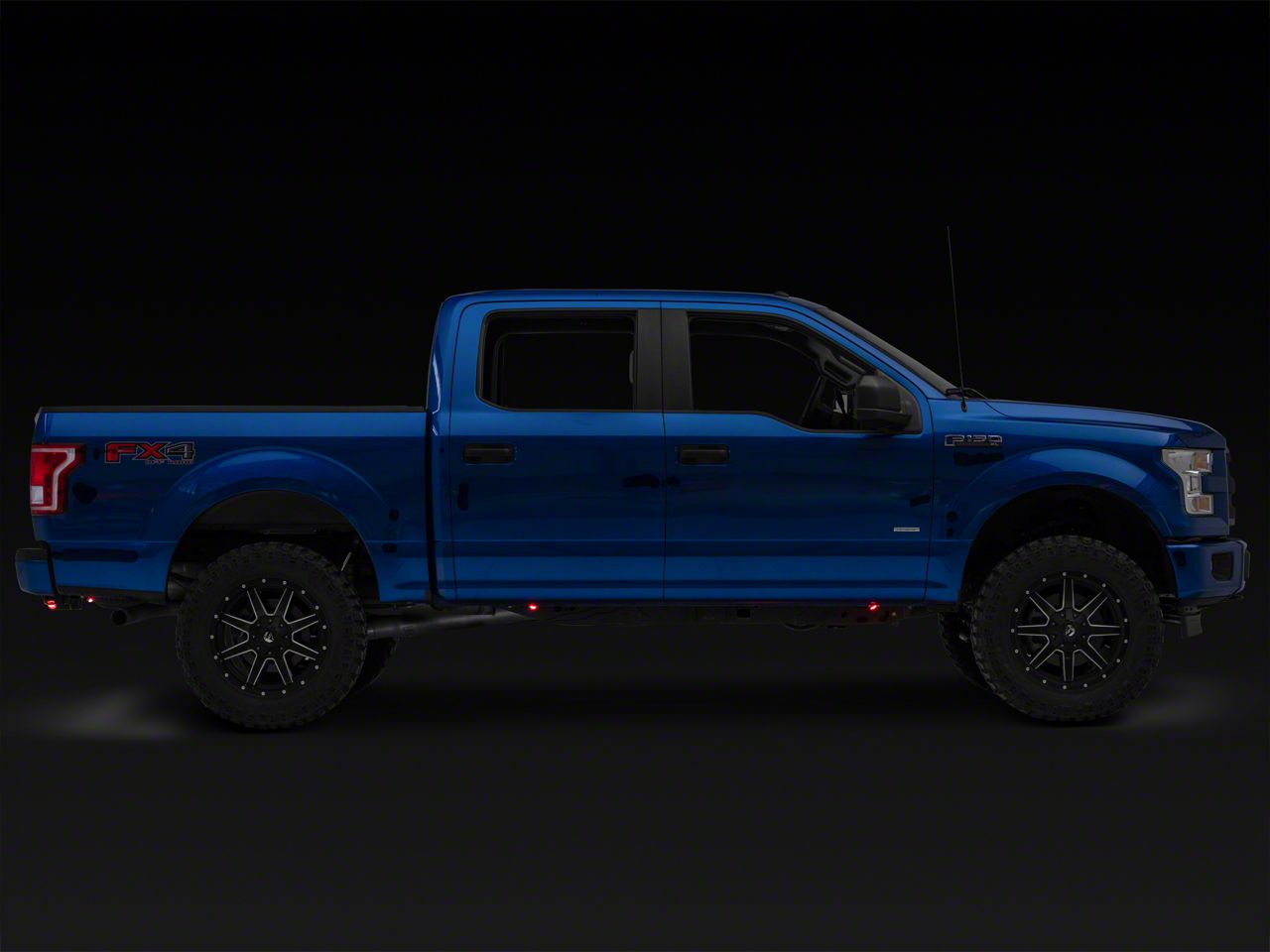 Undercarriage Lighting. Illuminate your undercarriage for better visibility with the Vision X Tantrum LED Rock Lights. These lights feature a vibrant red color which install under your Ford F-150 for better vision at night. Easily make repairs to your truck, check your position when rock crawling, or just give your truck a reason to stand out. The Tantrum Rock Lights come in a kit of (8) 1 watt pods and include a multi-speed scanning and strobe mode. You can even turn your lights on and off with the included wireless remote for a precise control.