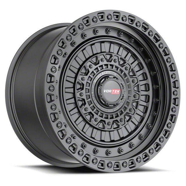 This 20x9.5 Vortek Off-Road VRD-703 Matte Black 8-Lug Wheel; 20x9.5; 12mm Offset is completed in a high-quality matte black finish that will make everyone take notice. For added looks and strength, the wheel features a durable clear coat that withstands the rigors of daily driving.