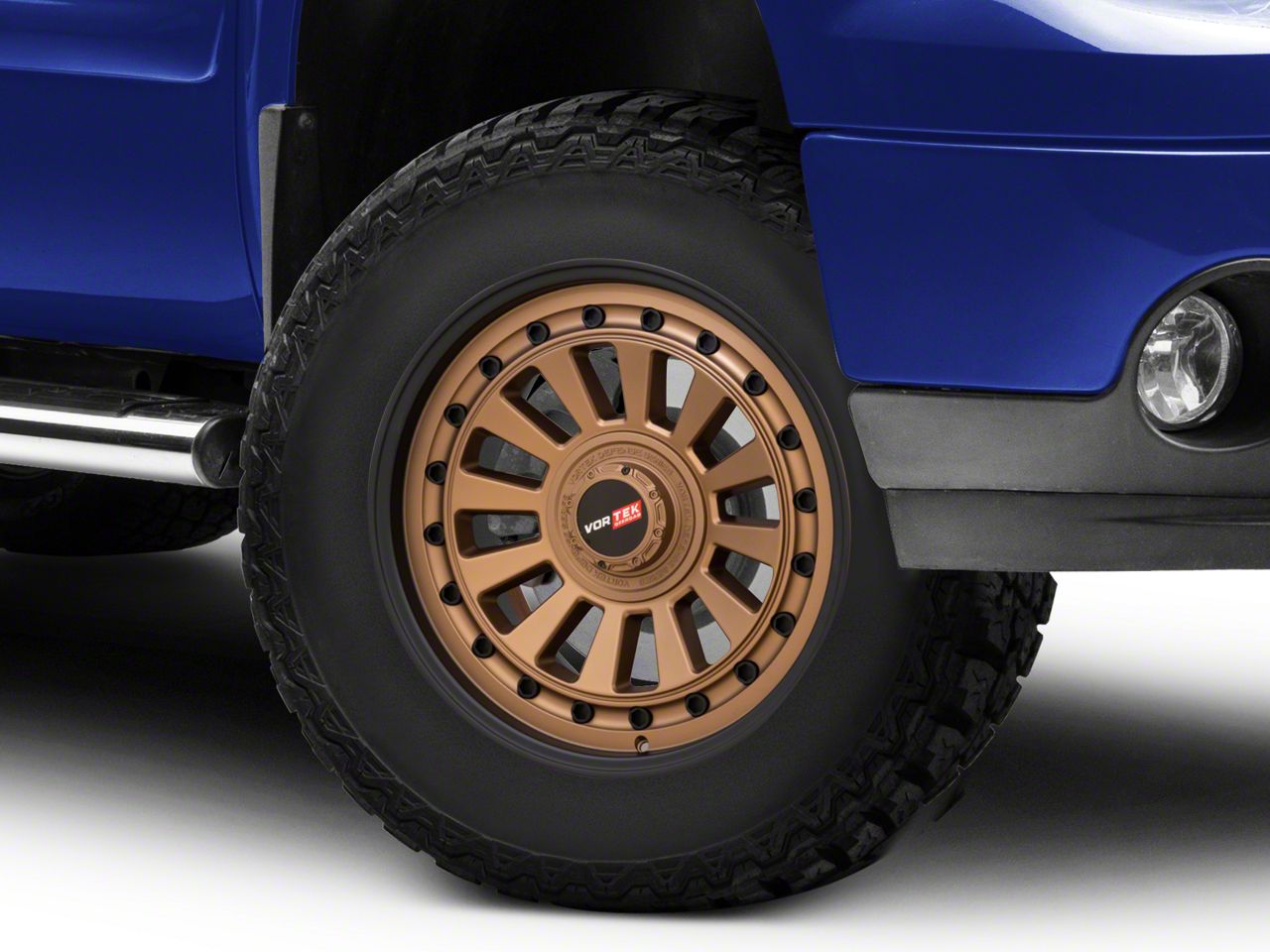 Vortek Off-Road VRD-702 Matte Bronze with Black Bolts and Lip 6-Lug Wheel; 17x9; 0mm Offset offers a striking balance between style and durability. The design speaks to the brand's commitment to quality, enhancing the vehicle's appearance with its distinct look. This wheel, with its unique aesthetics, is ideal for drivers who appreciate a blend of modern design and robust functionality.