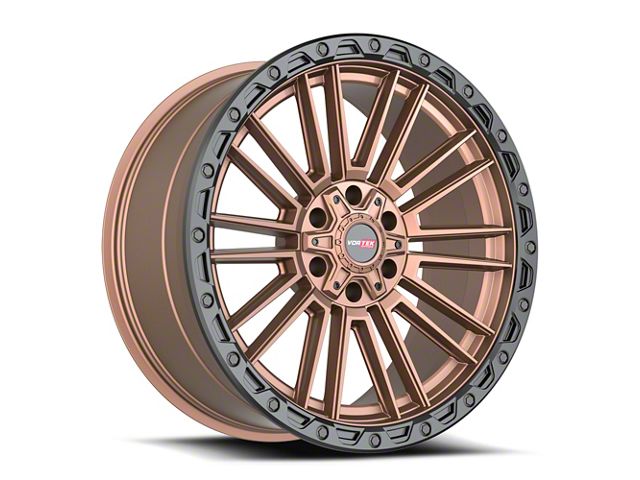 Vortek Off-Road VRT-604 Matte Bronze with Black Bead Ring 6-Lug Wheel; 18x9; 0mm Offset exudes sophistication with its finish, offering a sleek and modern appeal to any vehicle it adorns. The design is meticulously crafted to enhance the aesthetic of your vehicle, giving it a distinctive and upscale look. Perfect for those seeking to elevate their vehicle's style, this wheel blends seamlessly with both contemporary and classic vehicle designs, making it a versatile choice for a wide range of vehicles. Its robust construction ensures durability, making it a reliable choice for drivers who value both style and quality.