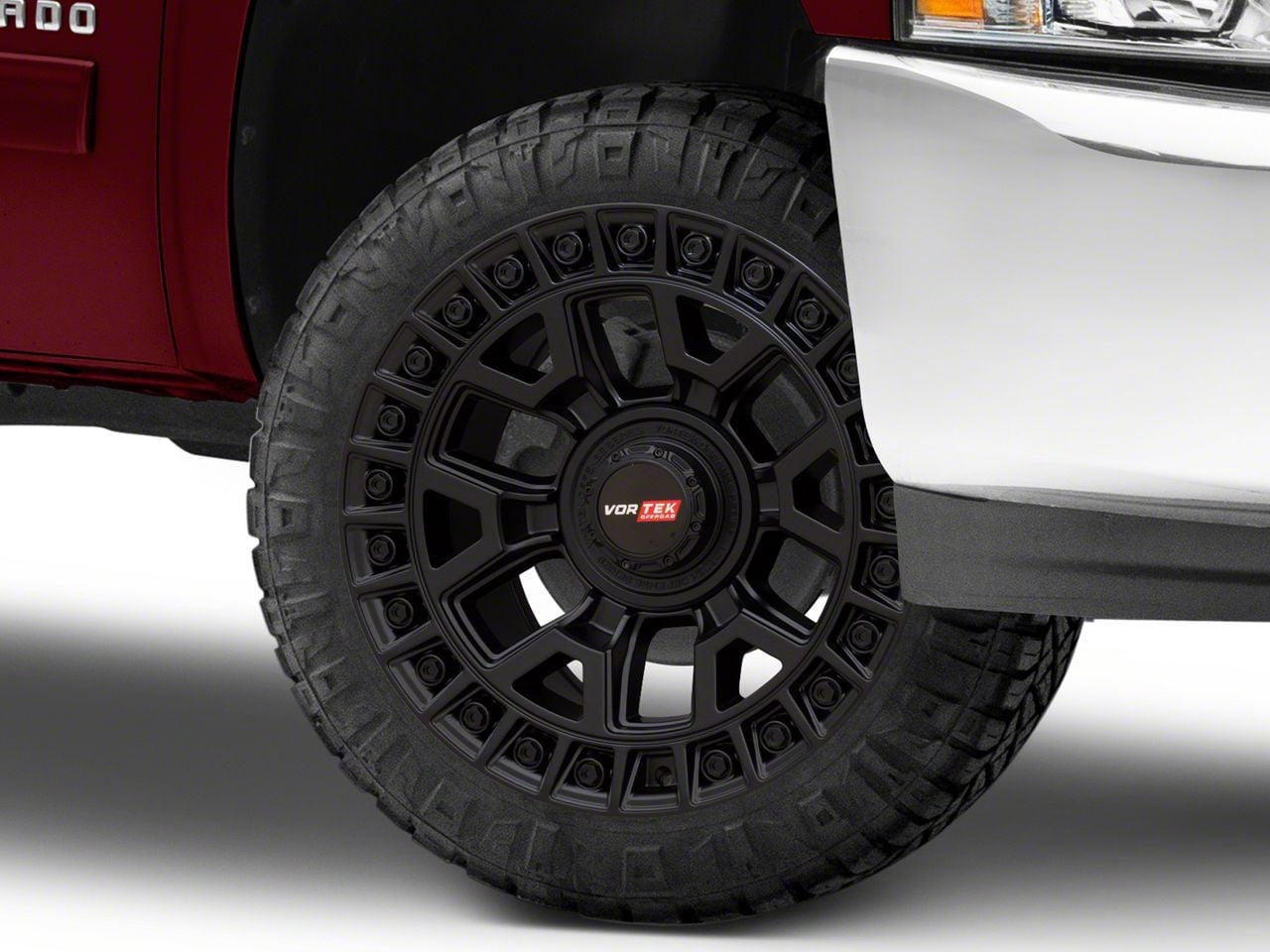 Vortek Off-Road VRD-704 Matte Black 6-Lug Wheel; 22x10; -2018mm Offset - Enhance your vehicle's style with the Vortek Off-Road wheel. This wheel's distinctive design and finish complement your vehicle's aesthetics, making a bold statement. It's crafted to accentuate the unique character of your car, emphasizing a premium and robust appeal.