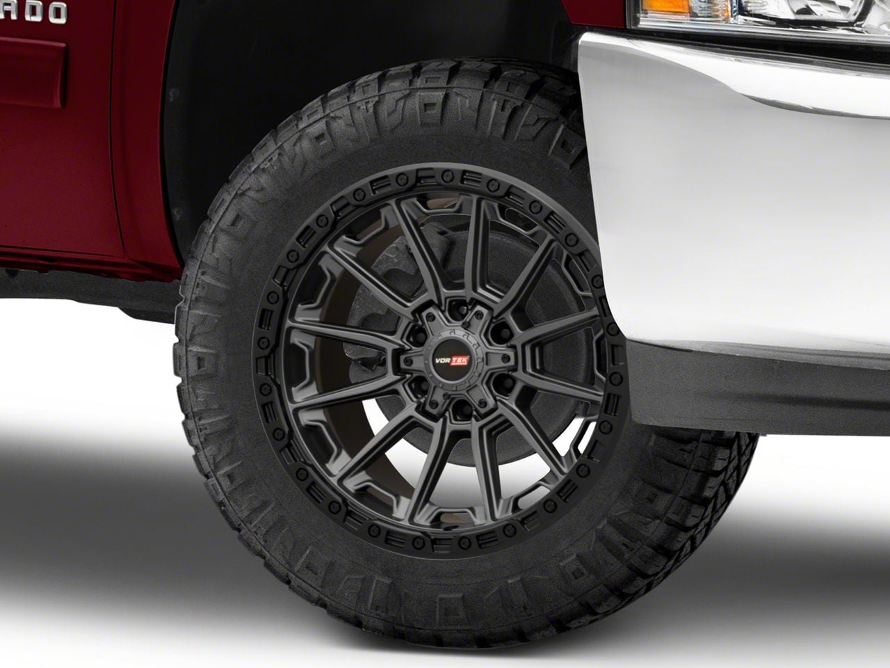 Application This Vortek Off-Road VRT-601 Matte Titanium with Black Bead Ring 6-Lug Wheel; 20x9; 18mm Offset, with a backspace of 5.709 Inch, 145mm and a bolt pattern of 6 x 139.7mm (6 x 5.5-Inch), enhances your vehicle's alignment and stability. Designed to fit 2007-2013 Silverado 1500 models, it ensures a perfect fit and improved driving experience. Sold individually.