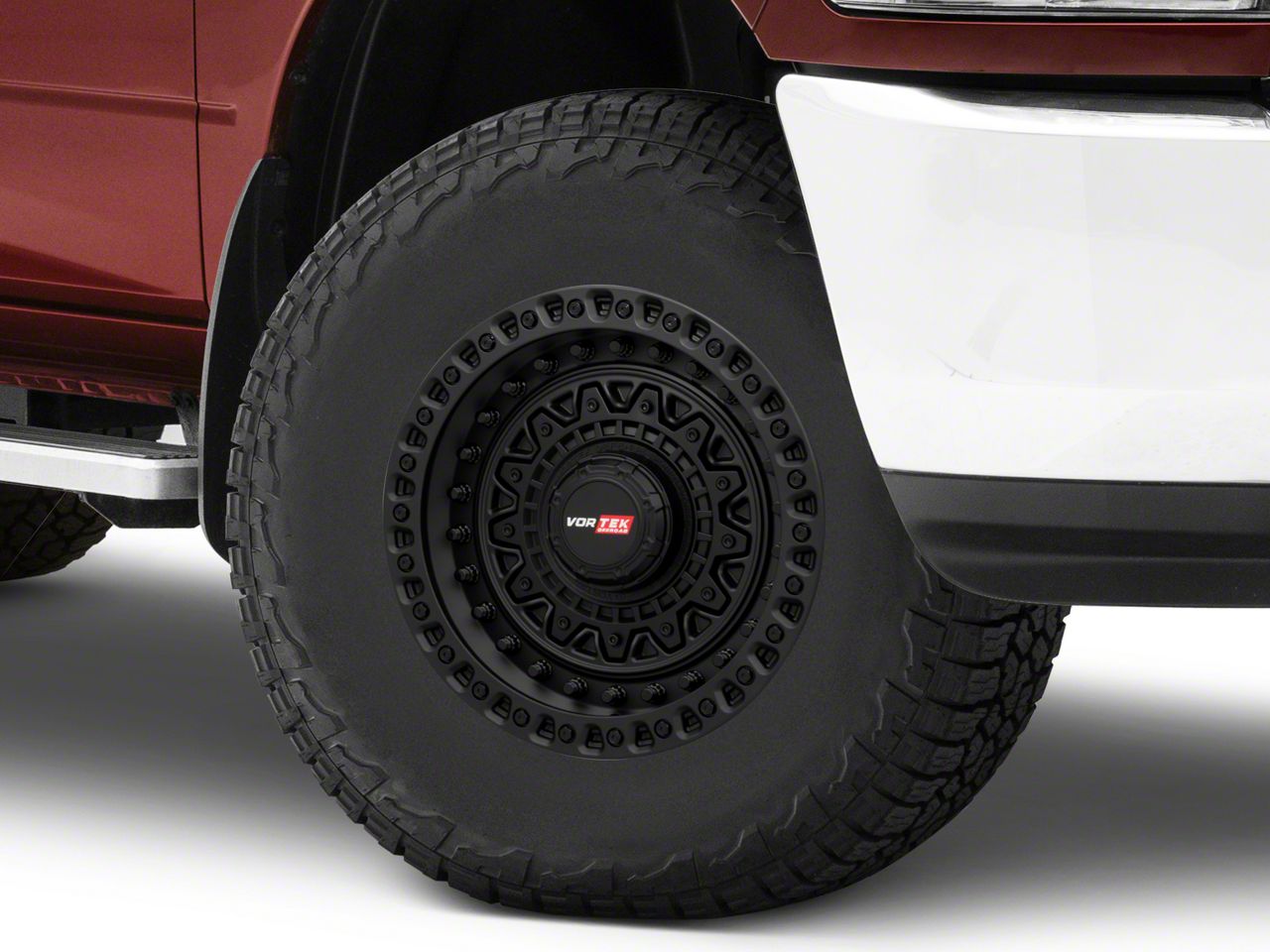 This 17x9 Vortek Off-Road VRD-703 Matte Black 8-Lug Wheel is completed in a high-quality matte black finish that will be the envy of everyone. There's a durable clear coat that protects against driving hazards.